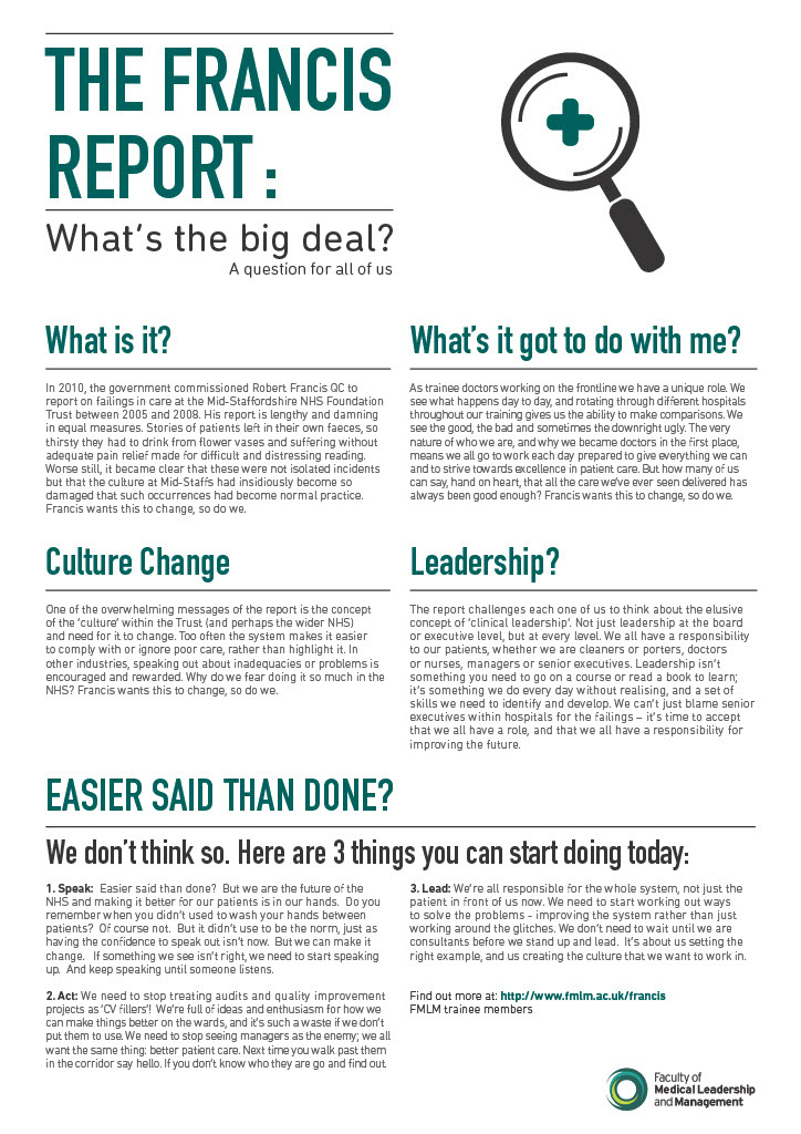 In 2010, the government commissioned Robert Francis QC to report on failings in care at the Mid-…